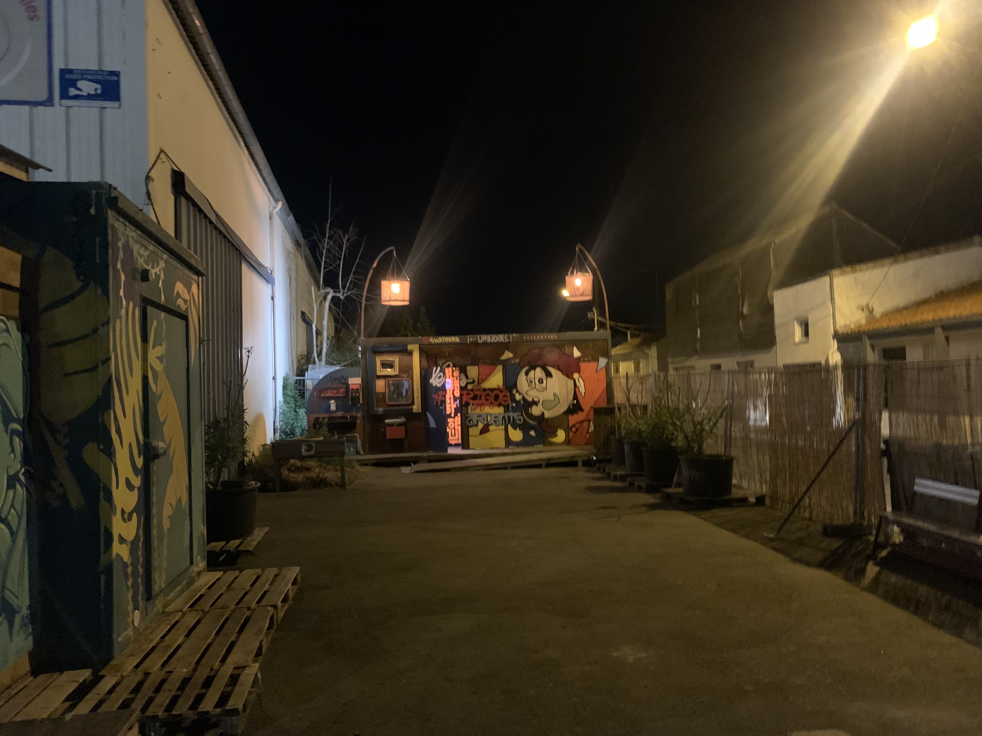Friche ouverte permettant de boire et manger en écoutant de la musique dans une bonne ambiance, divers stands proposent des pizzas, burgers, frites, empegnada, glaces...